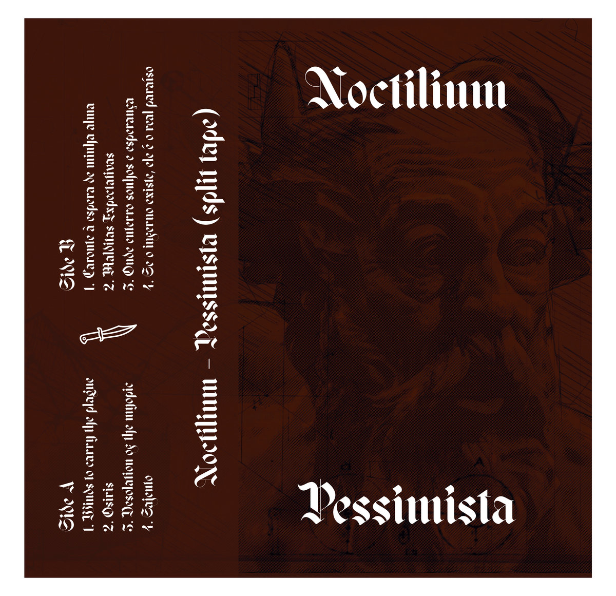 High-bias cassette tape professionally produced. Limited blood infused shell. Only 50 copies available. Contains both the Noctilium and Pessimista sides of the split.